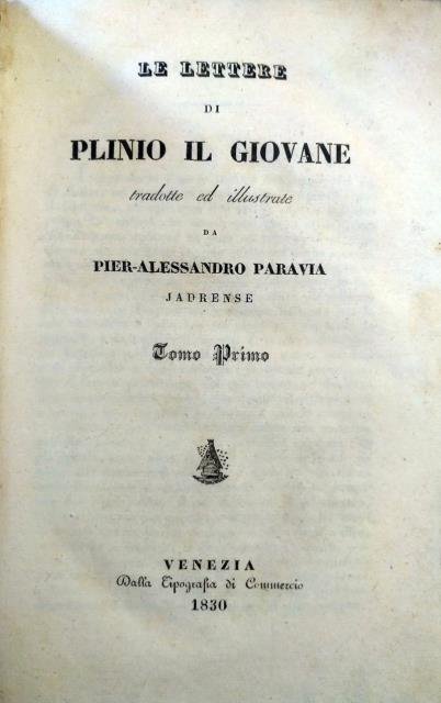 Le lettere di Plinio il Giovane tradotte ed illustrate da Pier – Alessandro Paravia Jadrense.