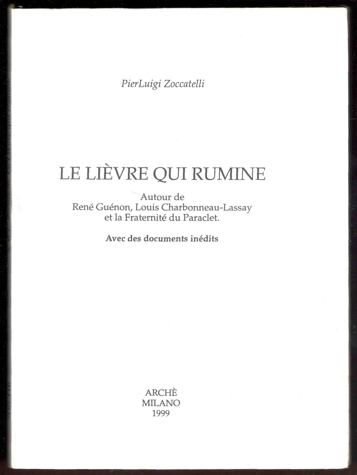 Le lièvre qui rumine. Autour de René Guenon, Louis Charbonneau-Lassay et la fraternité du Paraclet. Avec des documents inédits