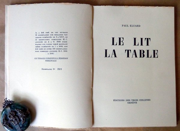 Un volume broché de format in 8° carré de 72 pp. Edition Originale; tirage limité exemplaire N°209/3000 sur vergé bouffant. Couverture rempliée; Bel état. Voir photos;