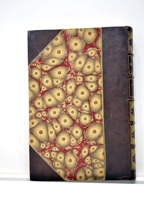 605 pages. (20,5x31cm). Incomplet: quelques pages ont été découpées, manquent peut-être des cartes ou des planches. Demi-basane à coins. Dos à nerfs orné. Tête dorée. Filets dorés. Quelques frottements. Quelques traces d'usure. Quelques rousseurs à l'intérieur. Deux pages détachées et un peu déchirées aux marges. Bon état.
