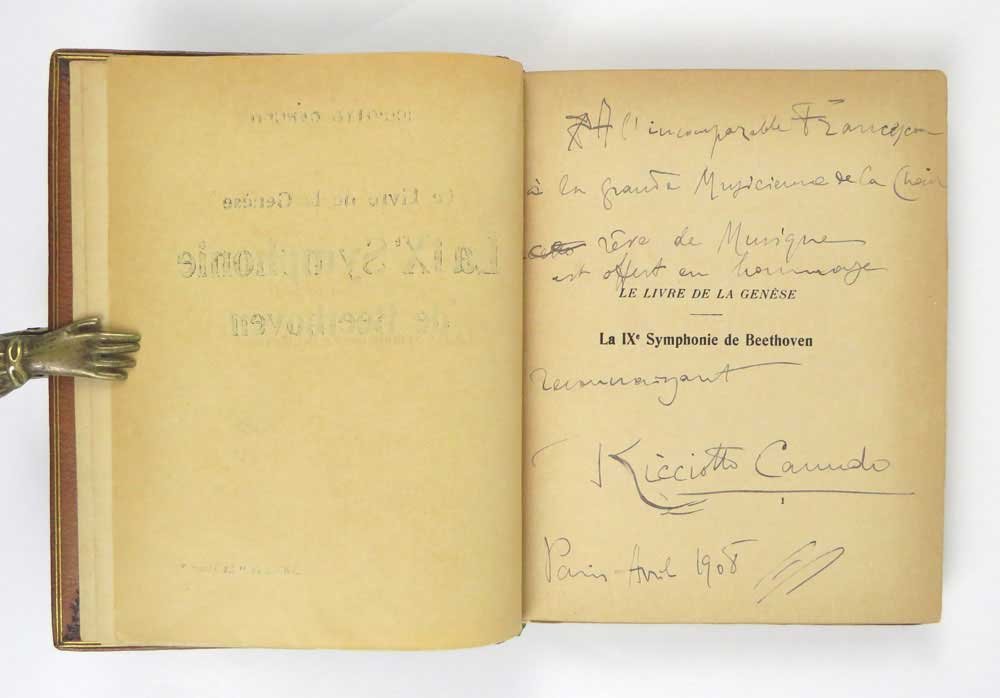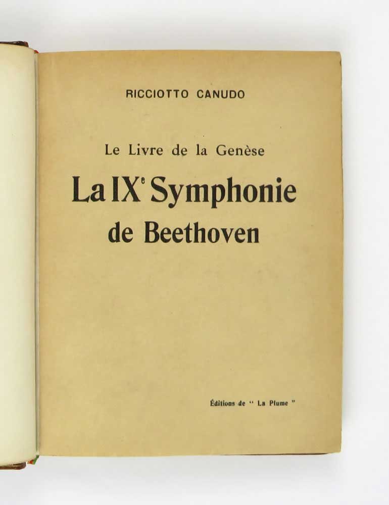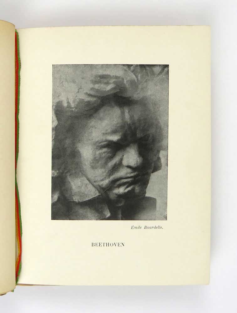 - pp. [10] XXII [2] 57 [21 di appendice con estratti della partitura], 2 carte patinate fuori testo con ritratti in bianco e nero (Beethoven e Leonardo Da Vinci, opera di Émile Bourdelle); comprese nella numerazione, quattro incisioni originali a piena pagina di P. Vulliaud e C. Dalbanne impresse al verso degli occhielli dei capitoli.