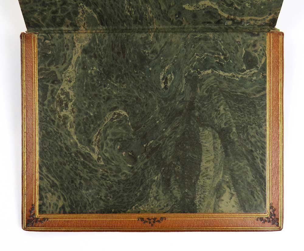 - bella legatura in piena pelle riccamente decorata ai piatti e al dorso, cinque nervature e titolo al dorso, conserva i due piatti della brossura originale,