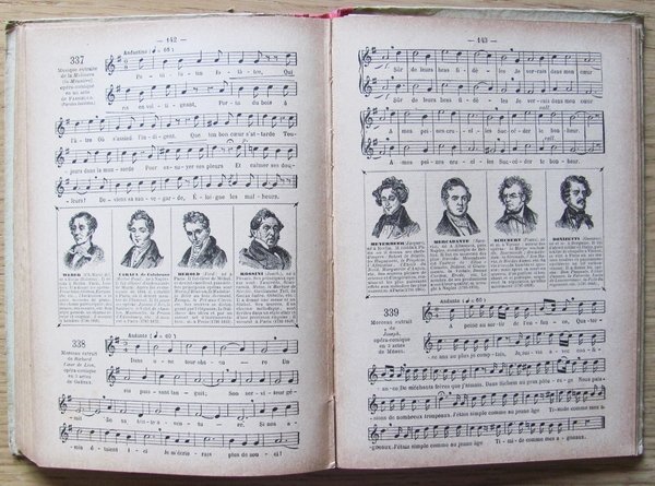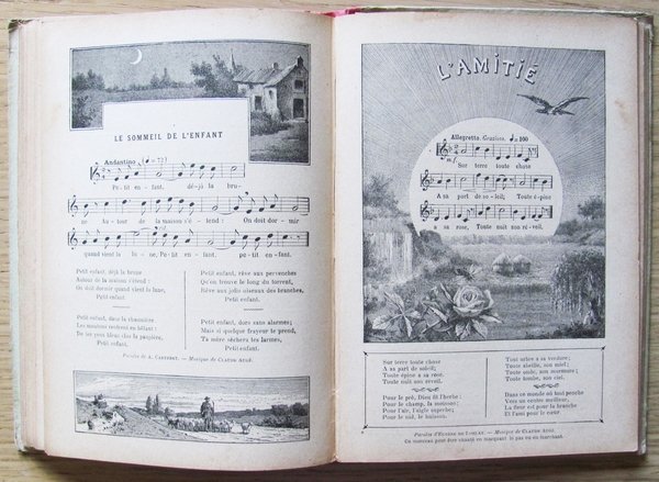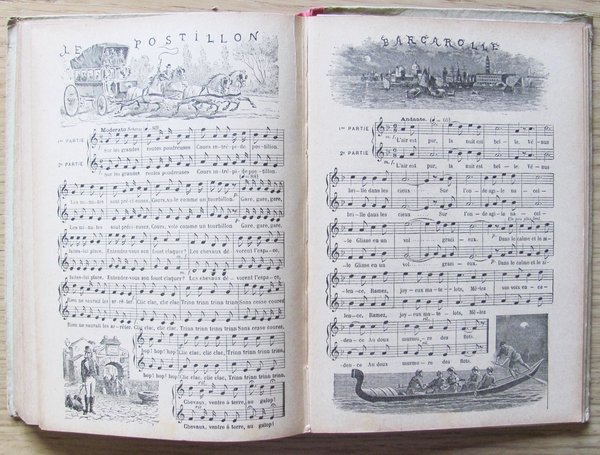220 illustrazioni in b/n n.t. e spartiti musicali a quasi tutte le pagine. Librairie Larousse - Paris, s.d. fine '800. Cartonato editoriale con dorso n tela originale. Lievissime tracce del tempo ai margini delle copertine. Buonissimo stato. ,