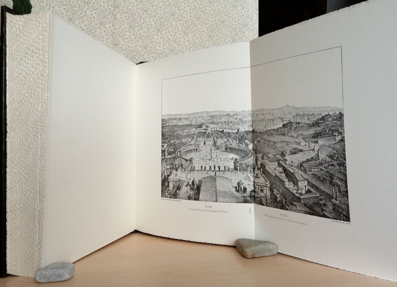 Volume in folio imperiale legato in pelle, piatto anteriore ricoperto da lastra in bronzo con la riproduzione dello stemma della Citt opera della bottega Nuccitelli su lavoro plastico di Arturo Bruni (la legatura della ditta Antinori), sguardie (presente la tavoletta bronzea figurata con la giustificazione della tiratura (1949) e della numerazione (245) nonch della dedica ad personam), occhiello, frontespizio, 241 pp, 4 tavole di cui 3 ripiegate. Stampato su carta espressamente fabbricata dalla cartiera Ventura di Cernobbio, quest'imponente volume un'opera d'arte tipografica. Vi si fa un escursus attraverso la millenaria storia dell'Urbe, dai primordi all'odierno, con una messe iconografica d'accompagnamento e completamento delle parole scriite eccezionale. Magnifico tutto, dalla legatura al contenuto agli autori dei diversi saggi. Impeccabile, perfetto, il volume contenuto in un astuccio in tela e cartone con i piatti e la costola illustrati. Ottimo esemplare.