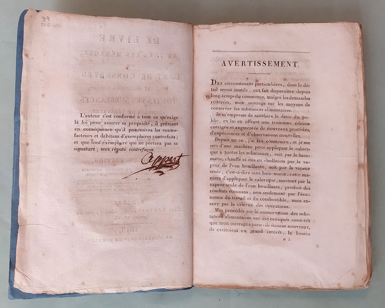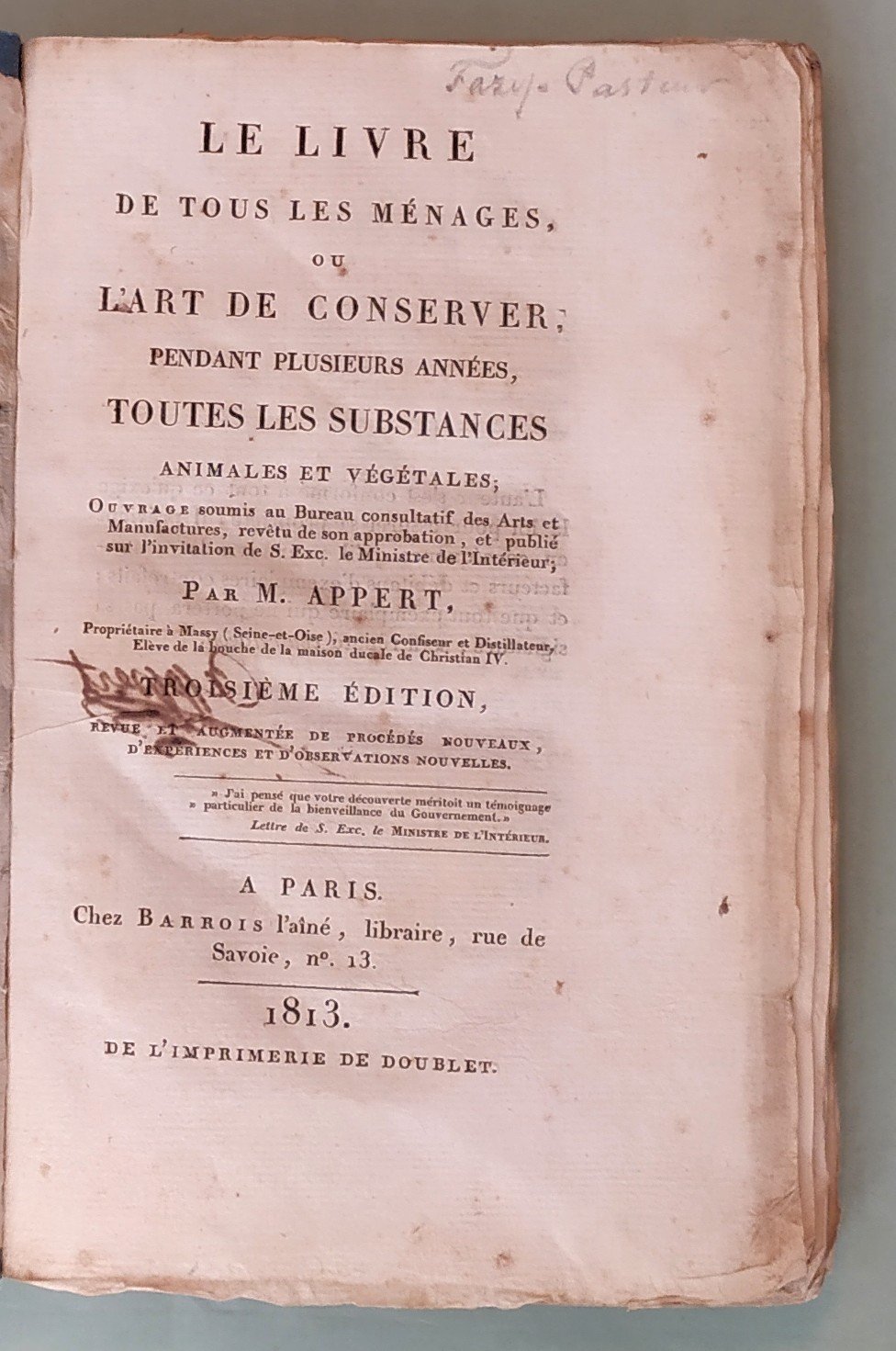 Le livre de tous les ménages ou l’art de conserver pendant plusieurs années toutes les substances animales et végétales. Troisième édition revue et augmentée de procédés nouveaux, d’experiences et d’observations nouvelles.