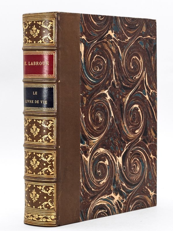 1 vol. fort in-8 carré reliure demi-veau brun, dos à 5 nerfs richement orné, G. Gounouilhou, Bordeaux, Paris, 1891, X-457 pp. avec pl. dont une dépliantes et G. Gounouilhou, Bordeaux, J. Rouam, Paris, 1893, 231 pp. Très bel exemplaire réunissant les deux ouvrages consacrés par le professeur Emile Labroue au Périgord Blanc et à Bergerac. L'auteur précise dans la préface à cette seconde édition de "Bergerac sous les Anglais" : "Notre éditeur bordelais, M. G. Gounouilhou, qui ne néglige aucune occasion de mettre en lumière tout ce qui intéresse l'histoire de Bergerac, sa ville natale, a pensé qu'il convenait de présenter au public, sous un même format, nos deux études d'histoire provinciale, "Bergerac sous les Anglais" et "Le Livre de Vie", et de faire ainsi, en deux volumes in-4, comme une "Histoire de Bergerac au XIVe siècle". C'est avec plaisir que nous avons répondu à son invitation, et nous publions aujourd'hui une seconde édition de "Bergerac sous les Anglais".