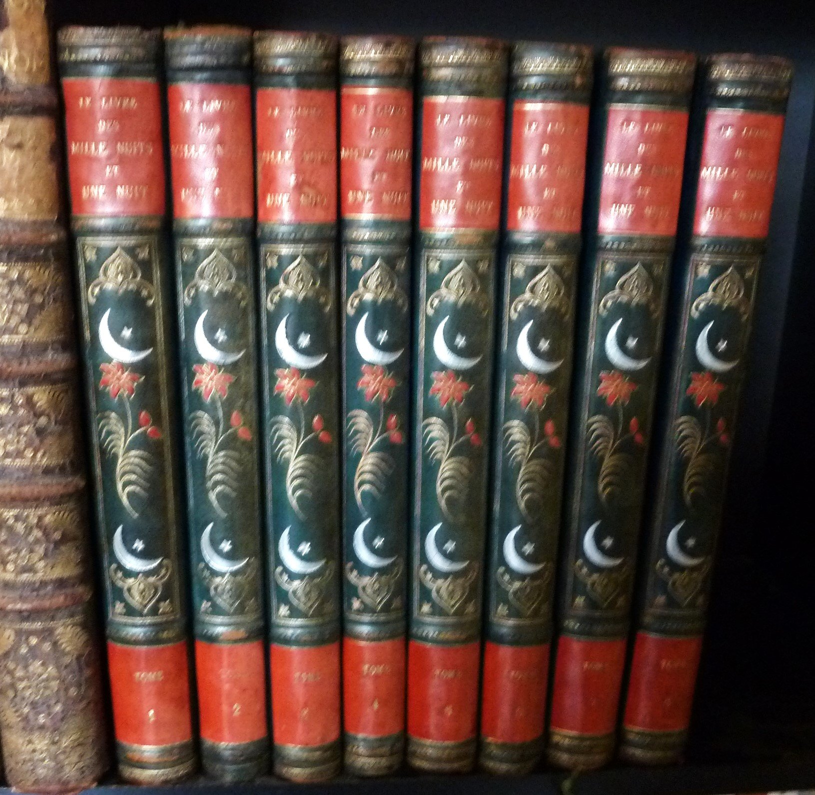 Ensemble bien complet de 8 volumes de format in folio de chacun 400 pp. environ. Des centaines de reproductions en Fac-Similé et en couleurs de miniatures , encadrements, enluminures, provenant de manuscrits persans anciens conservés au Musée Guimet, à la BNF. Reliure de l'éditeur en demi basane bleu nuit; dos au décor mosaïqué; pièces de titres en basane cerise, titres dorés. Têtes dorées. Charmant décor de style "art-nouveau". Quelques défauts: coins légèrement marqués; quelques griffures discrètes sur la basane; les dos sont légèrement décolorés. Traces d'adhésifs sur les contreplats. Corps de l'ouvrage bien frais. Voir les photographies.