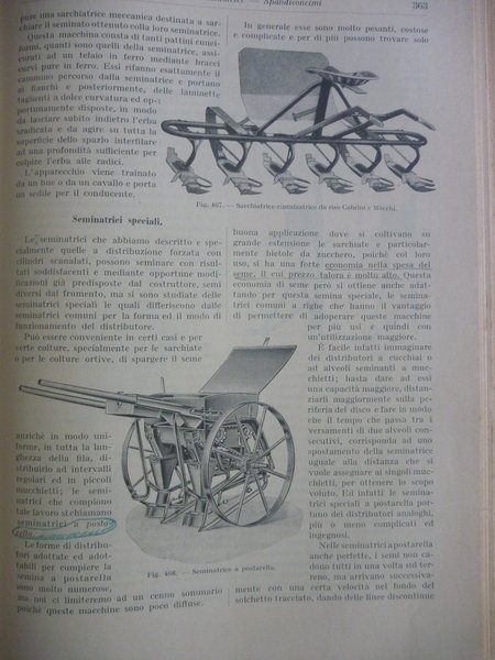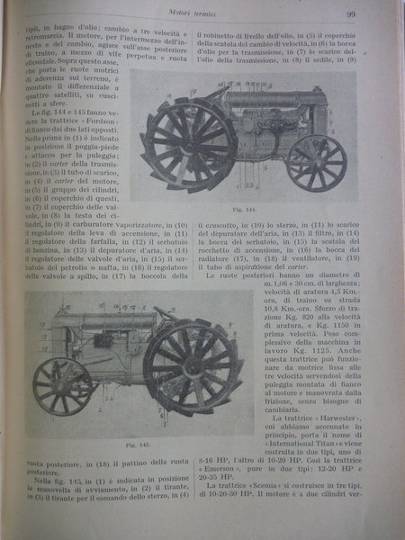 Editore: Unione Tipografica Editrice Torinese (UTET), Torino, 1929 Collana: Nuova enciclopedia agraria italiana Pagine: 512 Dimensioni cm 19,5 x 28 Illustrazioni: 598 figure nel testo Formato: 8°. Rilegato cop. rigida. Motori termici, a vento, idraulici, elettrici, trasformatori, impianti elettroagricoli, attrezzi e macchine per la lavorazione del terreno, strumenti per i lavori complementari del suolo, macchine da raccolta, macchine ad uso del bestiame, motori per l'acqua. Presenti illustrazione di TREBBIATRICI, MOTORI FISSI, LOCOMOBILI A VAPORE BREDA, TRATTORI TESTA CALDA BUBBA e LANZ, ecc.