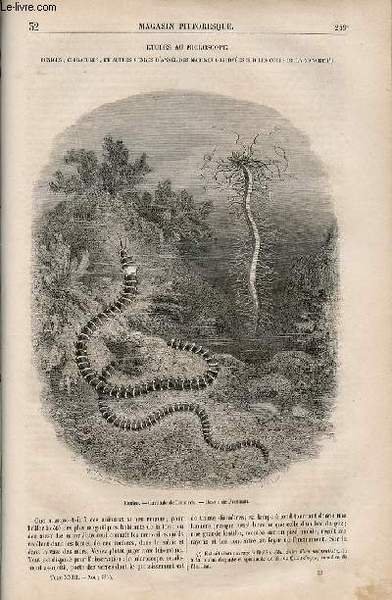 LE MAGASIN PITTORESQUE - Livraison n°032 - Etudes au microscope - eunices, cirratules, et autres genres d'annélides marines observées sur els cotes de la Manche.