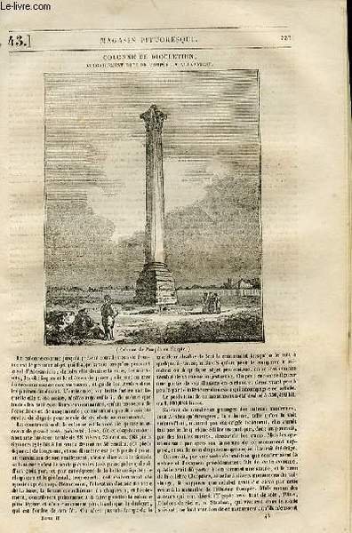 LE MAGASIN PITTORESQUE - Livraison n°043 - Colonne de Dioclétien vulgairement dite de Pompée, à Alexandrie.
