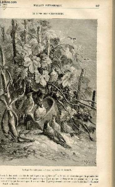 mai 1882. In-12. Broché. Bon état, Livré sans Couverture, Dos satisfaisant, Intérieur frais. 8 pages environ illustrées de gravures en noir et blanc dans le texte. Paginées de 137 à 144. . . . Classification Dewey : 70.4413-Magasin pittoresque, universel et mosaïque