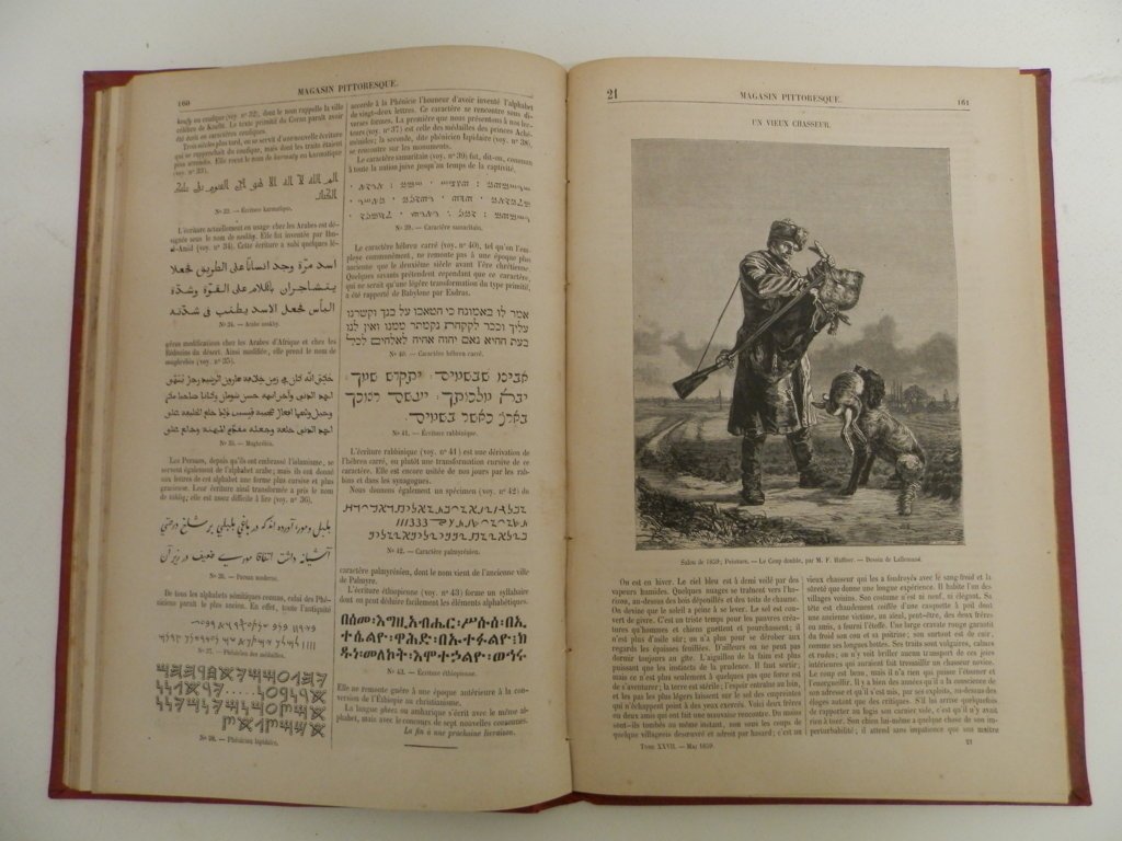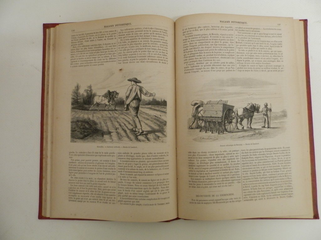 4°, mm 290x190, pp. 412, al fondo tavola delle materie, testo in francese su doppia colonna, ricco di incisioni in legno, fascicoli rilegati in tutta tela rossa titolo impresso in oro al dorso, buon esemplare, normali lievi bruniture. Edito dal 1833 al 1938. Il nome “Magasin” esprime proprio l'eclettica selezione degli argomenti trattati, è stata una sorta di enciclopedia popolare attenta soprattutto alla storia l'archeologia, le scienze e le industrie.. *** TUTTI I NOSTRI LIBRI SONO VISIBILI PREVIO CONTATTO MAIL O TELEFONO NELLA NUOVA SEDE DI MILANO: LIBRERIA COSMOPOLIS, VIA JOMMELLI, 22. ***