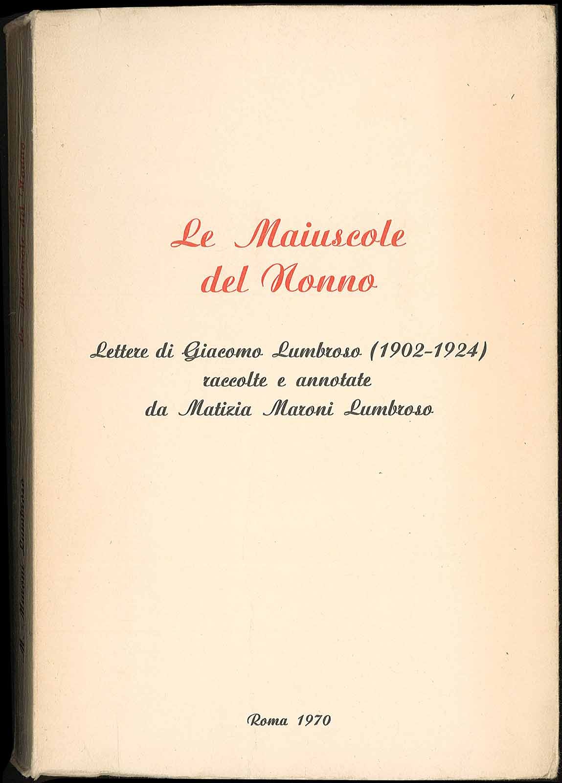 Lettere di Giacomo Lumbroso (1902-1924) raccolte e annotate da Matizia Maroni Lumbroso. Due ritratti in bn fuori testo. Leggero ingiallimento delle pagine, piega in copertina e lieve usurada scaffale.
