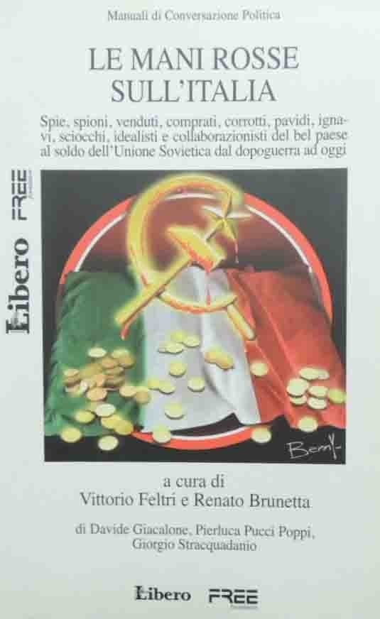 Le mani rosse sull’Italia. Spie, spioni, venduti, comprati, corrotti, pavidi, ignavi, sciocchi, idealisti e collaborazionisti del bel paese al soldo dell’Unione Sovietica dal dopoguerra ad oggi, a cura di Vittorio Feltri e Renato Brunetta, s.n. (ma alla prima di copertina: Libero – Free Founation), s.l. (ma stampato a Firenze, presso la Lito Terrazzi) 2006, pp. IV, 325, cm 21, br. ed. Collana Manuali di Conversazione Politica, n. 6. Perfetto.