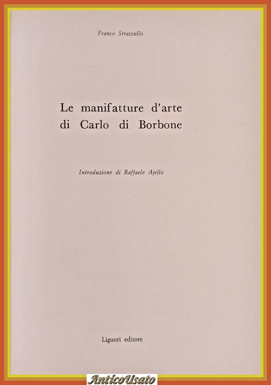 LE MANIFATTURE D'ARTE DI CARLO DI BORBONE di Franco Strazzullo. Liguori Editore, 1979 . 352 pagine, numerose fotografie in bianco e nero nel testo e fuori dal testo. Copertina editoriale in tutta tela. Stato di conservazione: molto buono (pagine normalmente ingiallite) Libro usato saggistica storia arte