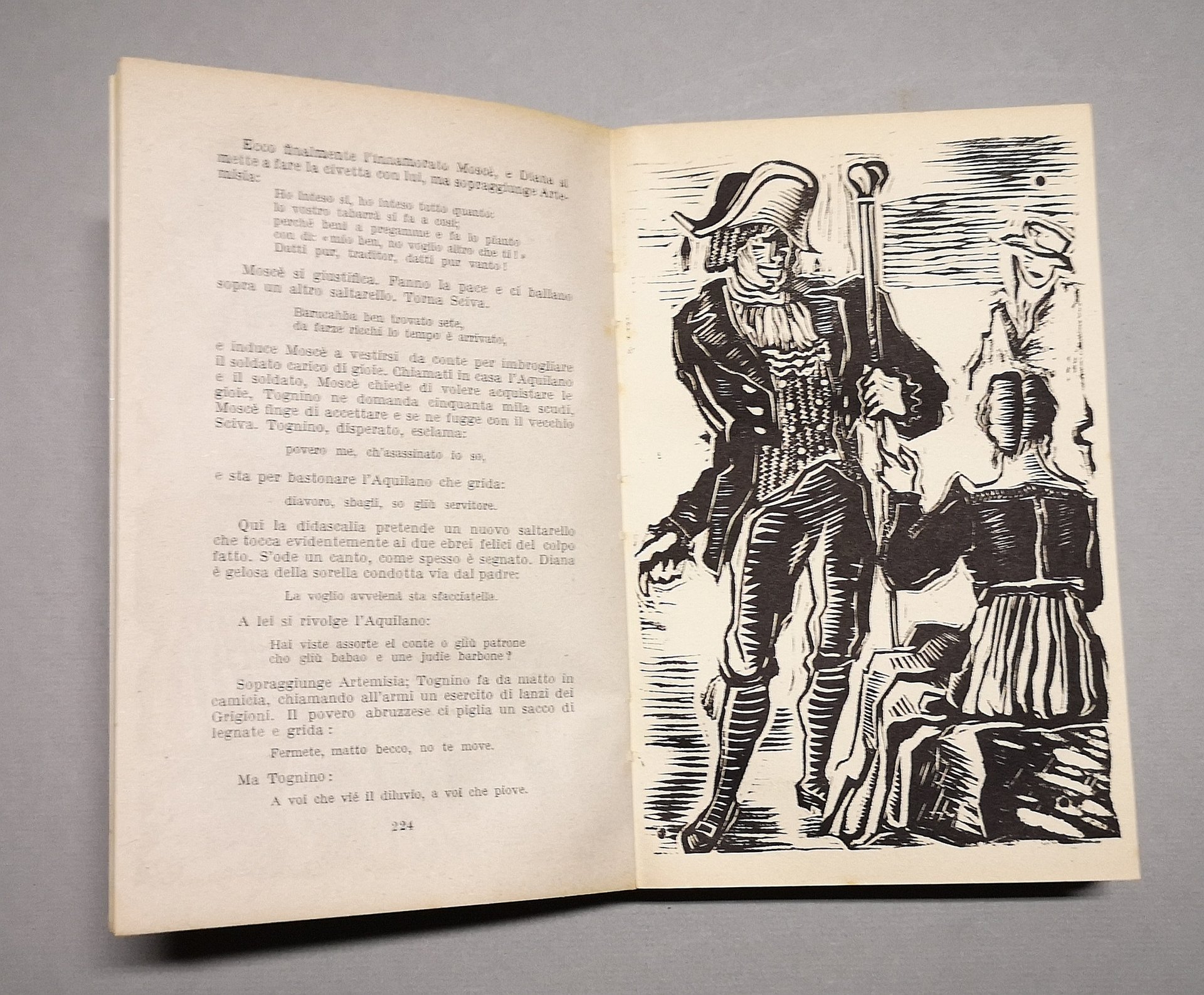 >in-16, pp. 555, broch. edit., 20 tavole f.t. di Enrico Prampolini. Anton Giulio Bragaglia, giornalista, scrittore e regista teatrale, il cui vero nome era Giovanni Miracolo (Frosinone 1890-1960), fondò a Roma il Teatro degli Indipendenti (1922) e fu direttore del Teatro delle Arti (1937-1943); fu grande innovatore scenotecnico. Tra le sue ultime opere si ricorda la presente (prima edizione Roma 1945), in cui tracciò un primo schema del teatro popolare e della scena dialettale romana. Bell'esempl. Renda-Operti, pp. 198-199.
