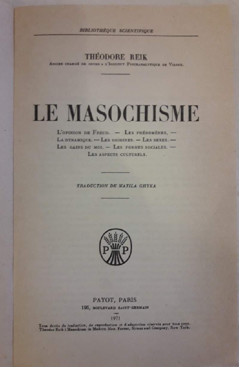 LE MASOCHISME(1971)