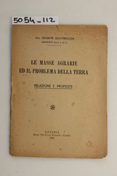 Le masse agrarie ed il problema della terra - relazione e proposte