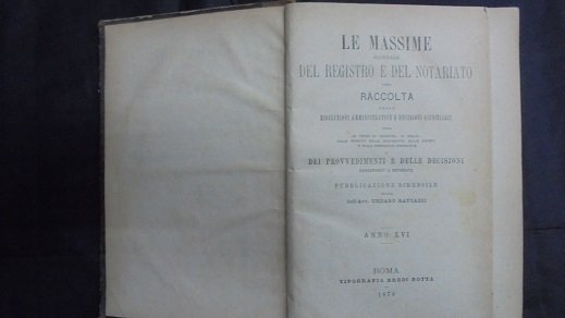 LE MASSIME, GIORNALE DEL REGISTRO E DEL NOTARIATO OSSIA RACCOLTA DELLE RISOLUZIONI AMMINISTRATIVE E DECISIONI GIUDIZIARIE.