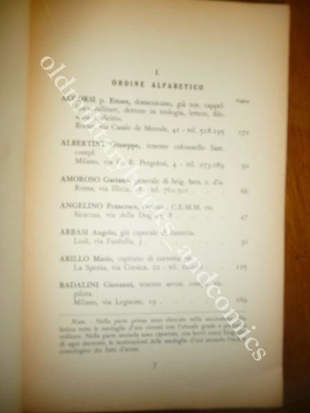 DESCRIZIONE: Tipografia Regionale Roma 1951, br. ed., pp. 178 in 8°. La prima parte riporta l'elenco dei decorati, poi per ognuno scheda individuale con motivazione delle decorazioni. CONDIZIONI: Discrete, vol. vissuto interni perfetti. PESO / WEIGHT: 300 gr. without package