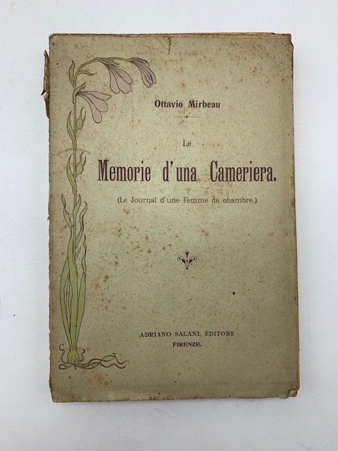 In 16 (cm 13 x 19), pp. 293 + (1 bianca) + (2). Brossura editoriale. "Alla fine del secolo, Octave Mirbeau ha tentato di fornire una rappresentazione dei costumi attraverso uno specchio olfattivo. Ipersensibile agli odori, l'autore ha superato la metafora per giungere a identificare per ciascun personaggio, luogo, situazione o paese, le emanazioni che lo contraddistinguono. Effluvi e profumi diventano segnali della condizione di una societa' stretta nella morsa della corruzione e dell'ipocrisia borghese. Memorie d'una cameriera, pubblicato nel 1900, traccia una panoramica degli odori dell'epoca: puzzo di piccola e media borghesia, effluvi sospetti di luoghi equivoci, esalazioni balsamiche di persone per bene, fino alla spaventosa assenza di odore della camera di Madame Lanlaire, la quale, non fornendo alcun indizio, lascia presagire tutto il peggio. Celestina, la protagonista, fa 'la domestica' di mestiere, un'occupazione ibrida, poiche' le permette di apprendere le abitudini delle classi piu' abbienti, senza pero' consentirle di condividerle. Le viene richiesta la pulizia esteriore, ma i profumi cosmetici che le vengono offerti hanno solo scopi perversi." (B. Munier, "Storia dei profumi. Dagli dei dell'Olimpo al cyber-profumo", 2006, p. 98).