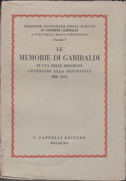 In-8 (Cm 22 x 15,8), pp. XX-420, brossura editoriale. Tavole bianco nero fuori testo. Edizione nazionale degli scritti di Giuseppe Garibaldi a cura della reale commissione, volume I. Millimetrica abrasione e piccolo strappetto alla brossura. INTONSO - OTTIMO