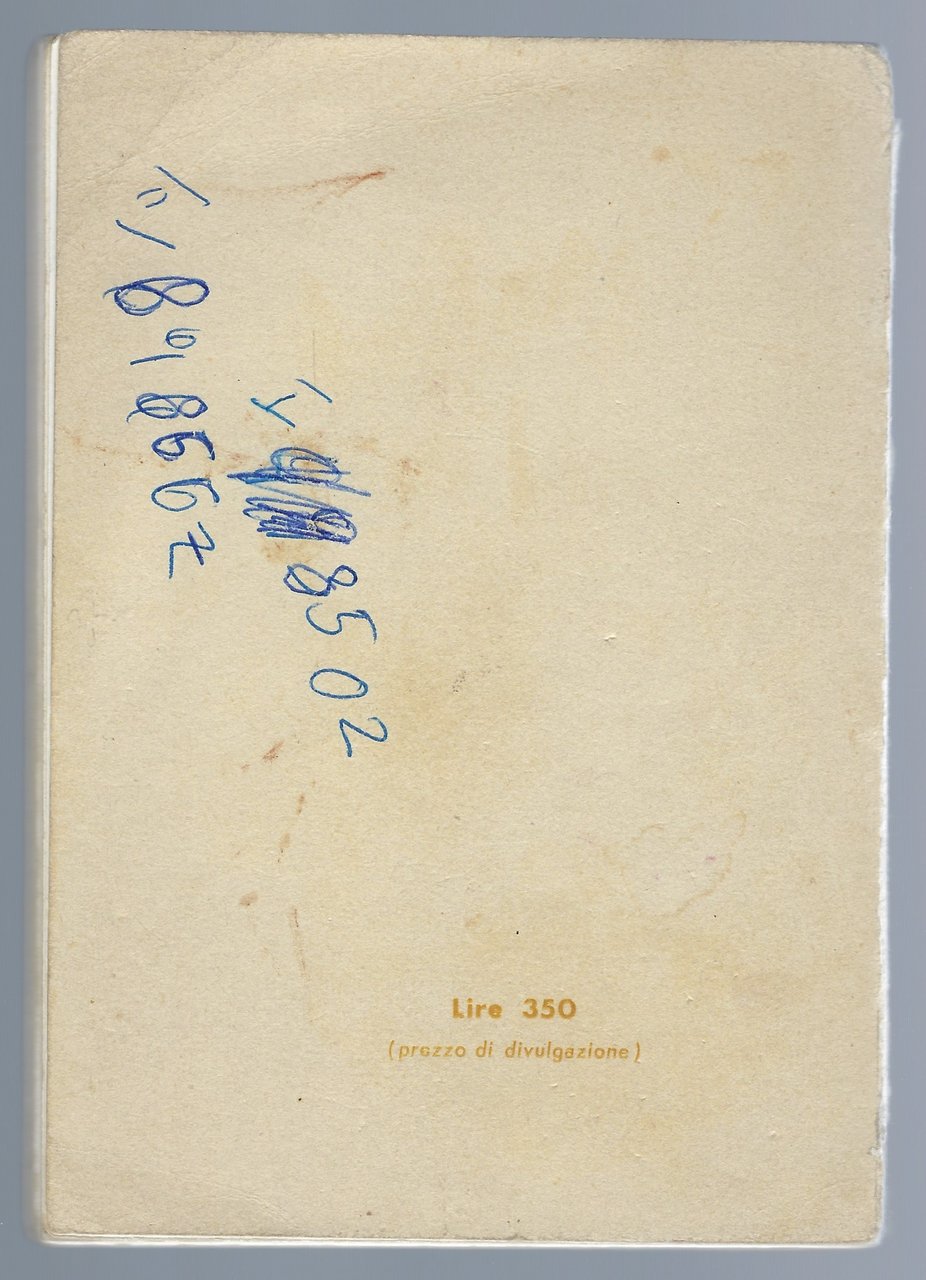 La coperta presenta alcuni difetti, tracce d'uso, un pezzettino mancante al dorso e scritte a penna al piatto posteriore.