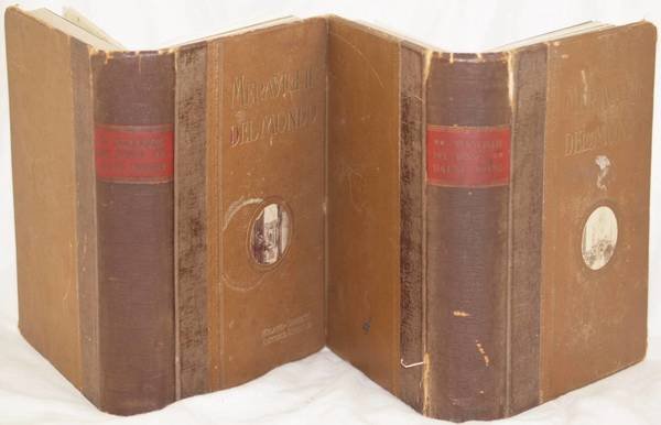In 4. Dim. 29,5x21 cm. Pp. VIII+598, X+578. Edizione senza data ma dei primi del '900 di questa opera sulle meraviglie del mondo scritta dai viaggiatori Harry Johnston, Alan Burgoyne, Perceval Landon, J. Thomson. L'opera è composta da due volumi ed è completa sebbene risultino mancanti le planches a pag. 97, 61 e 429 del primo tomo Il volume primo è dedicato all'Asia, Oceania e Pacifico e Africa. Il secondo volume America del Nord, America centrale e Meridionale, Europa. All'interno moltissime foto nel testo e a piena pagina in bianco e nero e 25 planches con illustrazione colorata coperte da velina (es. Amida, Moschea della Perla a Delhi, Sarnath Tope, Casimir rovine di Martand, grotta di Lucas a Jenolan, Cascata di Sutherland, Isola di File, Tombe dei califfi al Cairo, Lago Bujuku e Ruwenzori, Gran Canon del Colorado nell'Arizona, Parco di Yellowstone, Cascata del Niagara, Alhambra, Venezia, Pompei, Cervino, Jungfrau, Chiesa della Resurrezione di Cristo ecc. In buone condizioni. Copertina in tela ediotriale in buone condizioni generali con lievi usure ai margini e dorso. Legatura in buone condizioni con lievi rotture. Pagine in buone condizioni con fioriture. Not dated edition but of the first years of 900 of thsi work about wonderful things of the world written by the voyagers Harry Johnston, Alan Burgoyne, Perceval Landon, J. Thomson. the work is amde up fo two volumes and it is complete even if planches in pag. 97, 61 and 429 of the first tome are missing. The first volume is dedicated to Asia, Oceania and Pacific and Africa. The second volume to North South and central America Europe. Inside many black and white photoes and 25 planches coloured illustration applied covered by tissue paper (es. Amida, Moschea della Perla a Delhi, Sarnath Tope, Casimir rovine di Martand, grotta di Lucas a Jenolan, Cascata di Sutherland, Isola di File, Tombe dei califfi al Cairo, Lago Bujuku e Ruwenzori, Gran Canon del Colorado nell'Arizona, Parco di Yellowstone, Cascata del Niagara, Alhambra, Venezia, Pompei, Cervino, Jungfrau, Chiesa della Resurrezione di Cristo ecc. In good conditions. Cloth editorial cover in good general conditions with wearings in the edges and spine. Binding in good conditions with slight cracks. Inside pages are in good conditions with foxings.