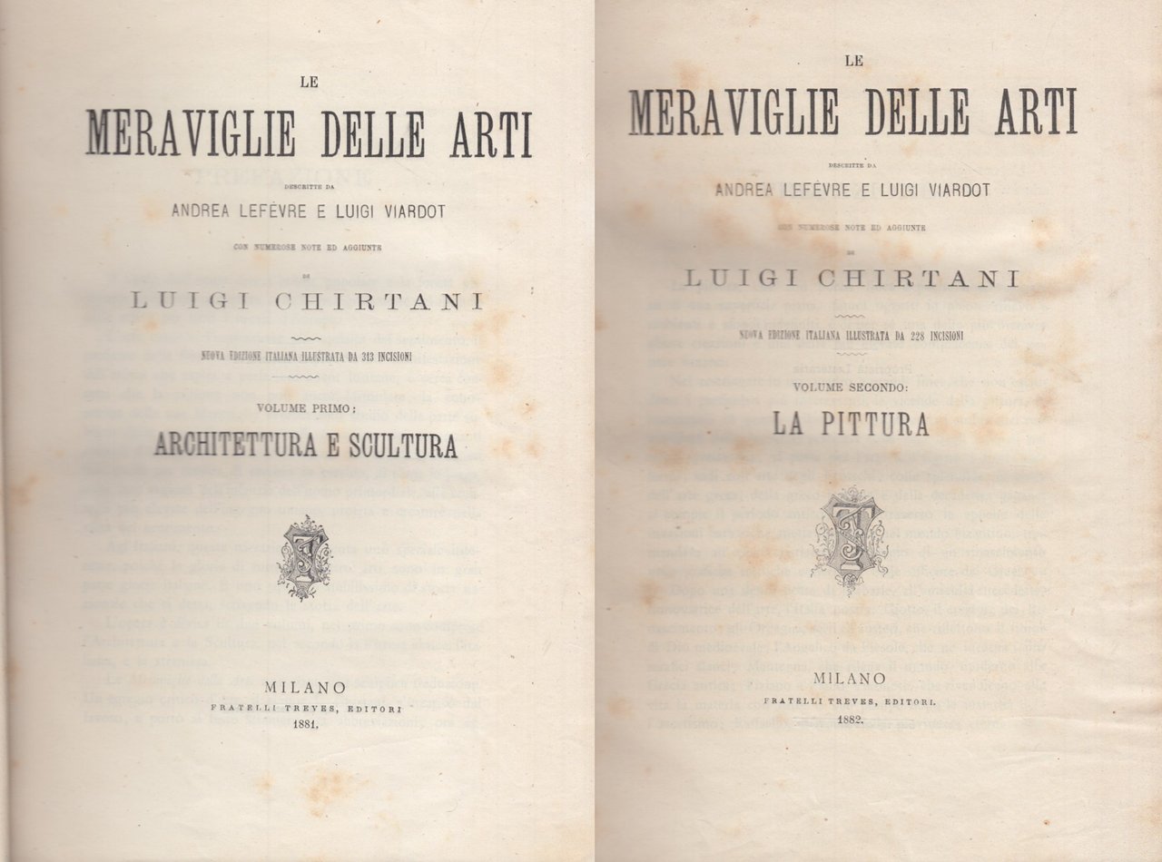Le meraviglie delle arti con numerose note ed aggiunte di Luigi Chiari Volume Primo: Architettura e Scultura, Volume Secondo: La Pittura