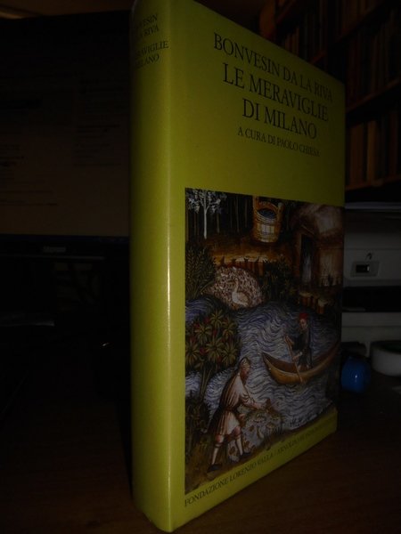 BONVESIN DA LA RIVA. Le meraviglie di Milano. A cura di paolo Chiesa. Fondazione Lorenzo Valla/Arnoldo Mondadori, 2009. In-8°, rilegatura editoriale in similpelle blu, sovraccoperta illustrata. (LXXIV) 216 (20) pp. Bellissima Edizione commentata e annotata della celeberrima cronaca sulla Città di Milano, DE MAGNALIBUS MEDIOLANI (1288), opera del Frate Minore Bonvesino Da La Riva, vissuto a Milano nel XIII Secolo. Testo in Latino. Traduzione Italiana a cura di Paolo Chiesa. Testo latino a fronte. In stato di nuovo. (cellophan orig.). Neg. scat. 3 mob. bianco carc.