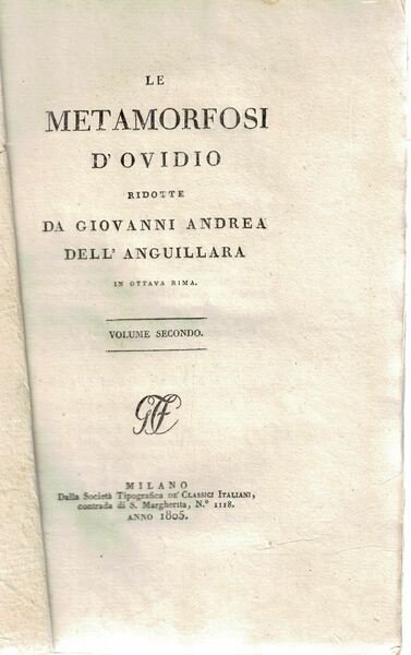 Le metamorfosi d'Ovidio ridotte da Giovanni Andrea dell'Anguillare in ottava rima. Volume Secondo