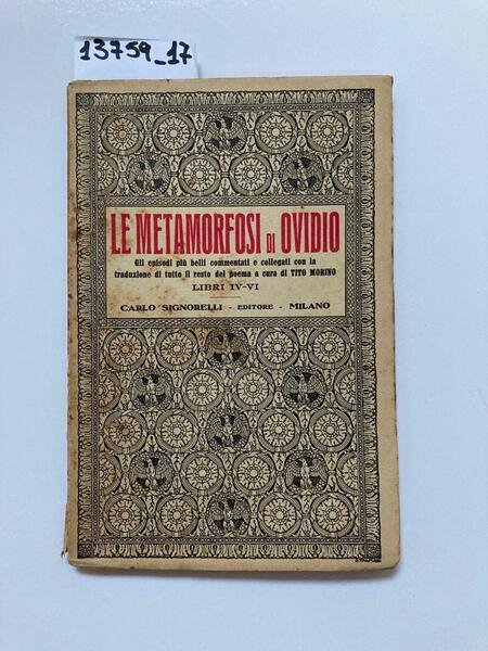 Le metamorfosi di Ovidio - Gli episodi più belli commentati e collegati con la traduzione di tutto il resto del poema a cura di Tito Morino - Libri IV e VI
