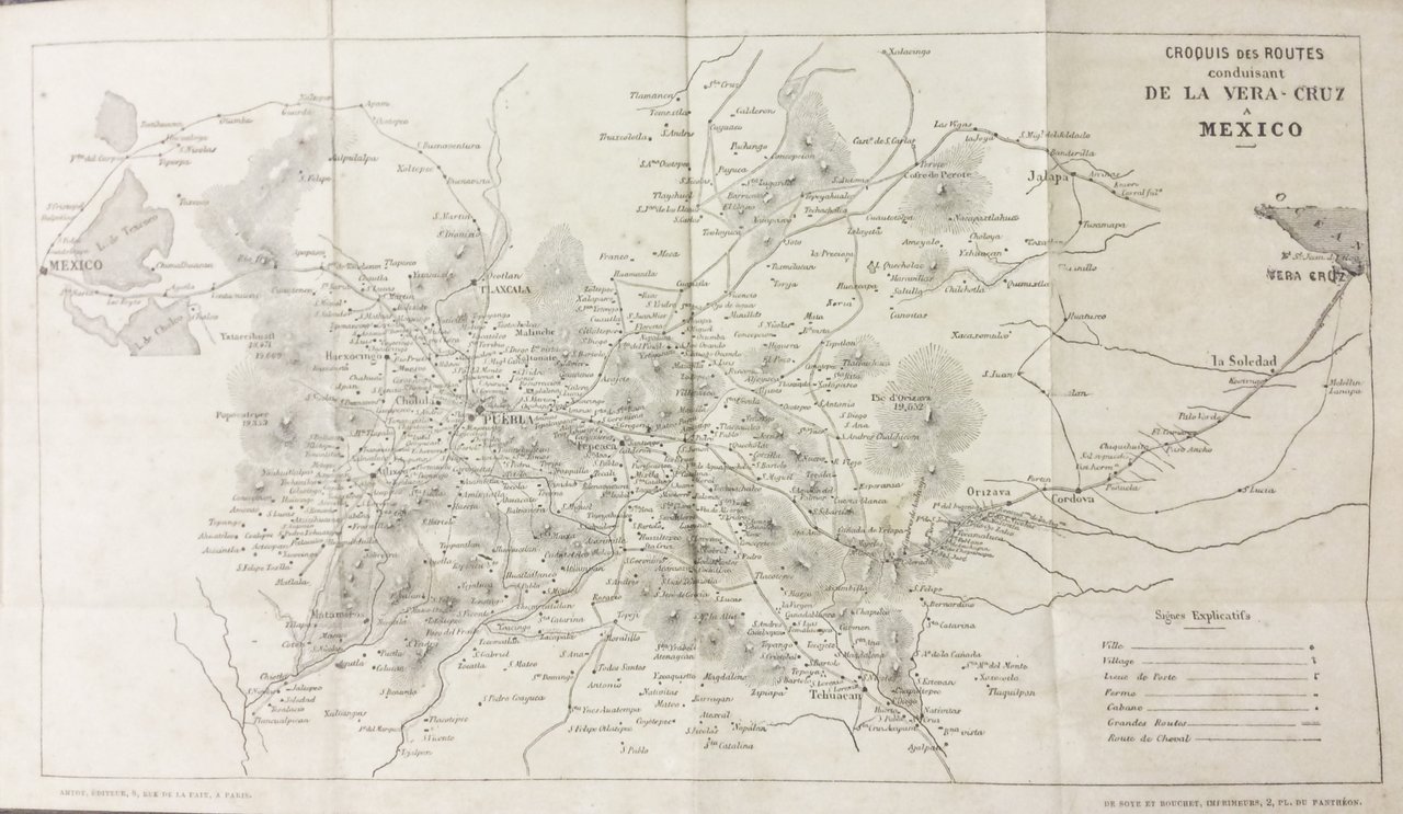 In-16 p. (mm. 170x108), mz. pelle coeva, fregi e titolo oro al dorso, pp. (4),388, con 1 cartina geografica fuori testo, più volte ripieg.: Croquis des routes conduisant de la Vera-Cruz a Mexico. Vi si tratta: Domination espagnole et guerre de l'indépendance 1519-1824 - Histoire complète de ses révolutions 1824-1861 - Campagnes du Général américain W. Scott 1847 - Causes de la guerre actuelle 1861-1862. "Edizione originale".Esempl. con fioriture.