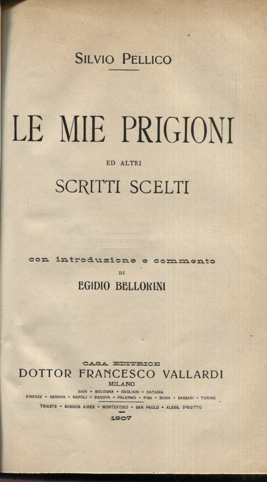 Le mie prigioni ed altri scritti scelti. Con introduzione e commento di Egidio Bellorini