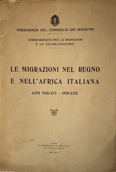 Le migrazioni nel regno e nell'Africa Italiana anni 1938-1939