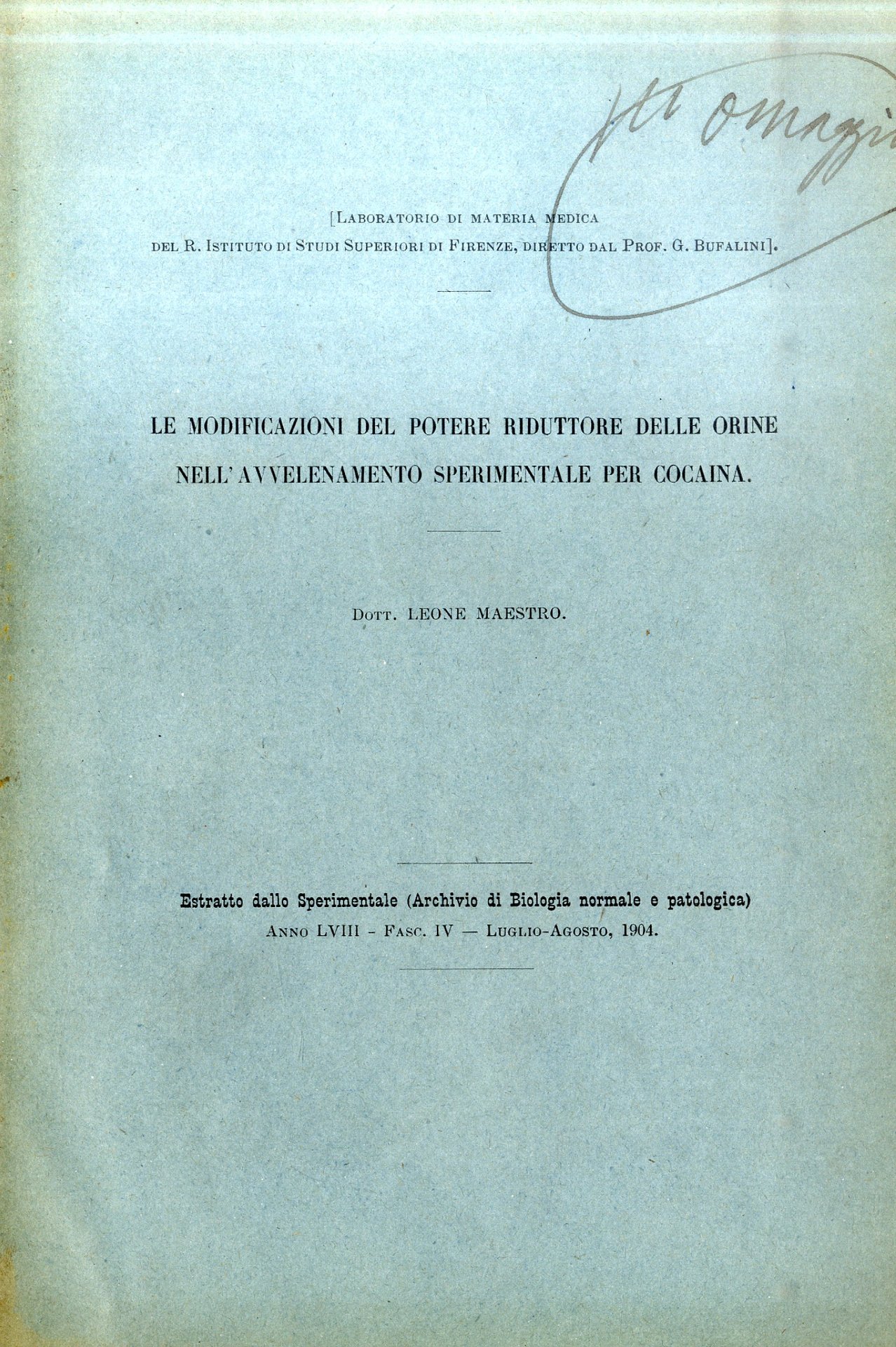 Le modificazioni del potere riduttore delle orine nell'avvelenamento sperimentale per cocaina
