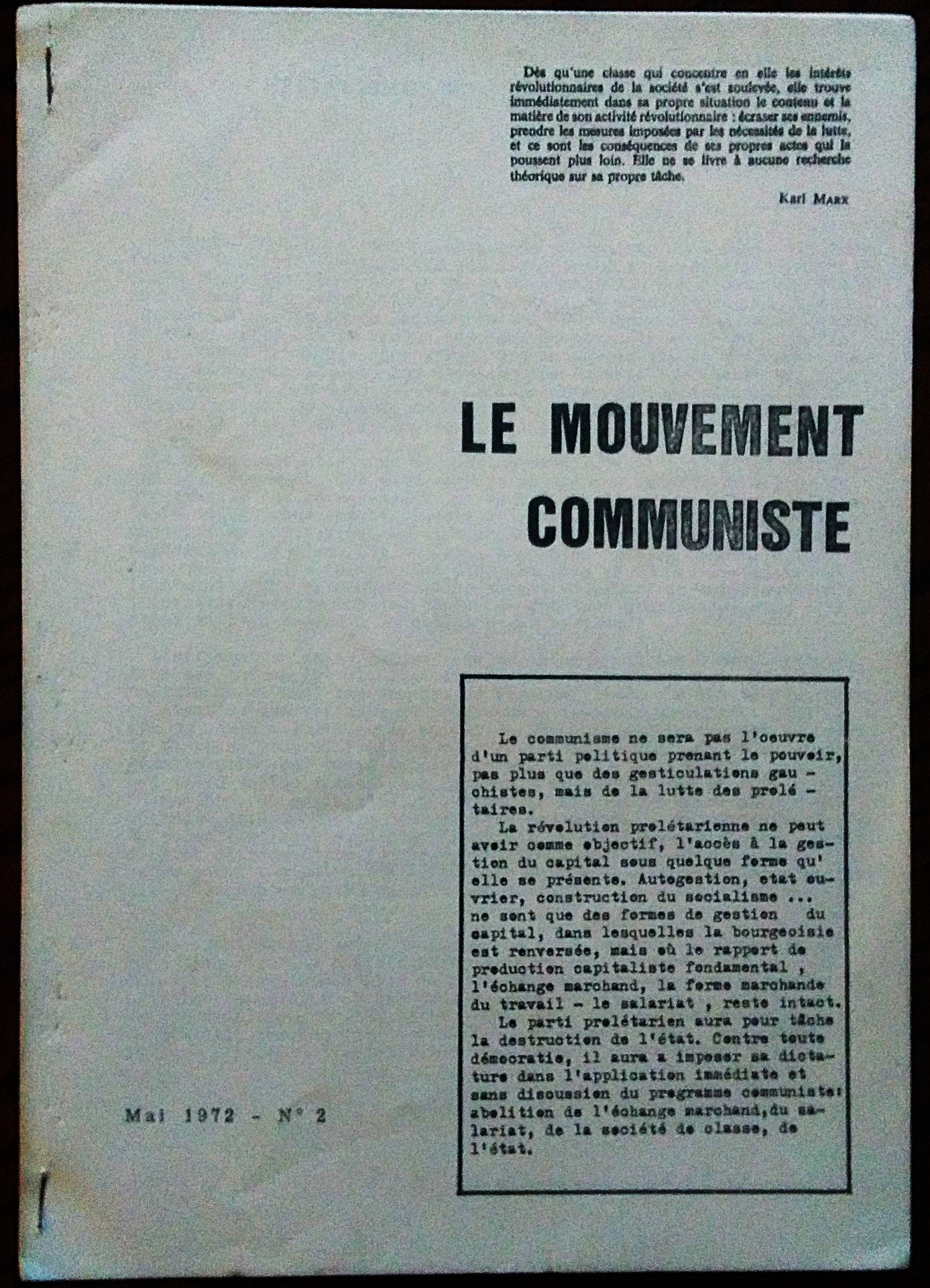 Le Mouvement communiste. Mai 1972 - N° 2.