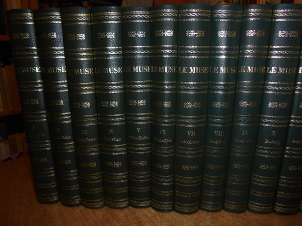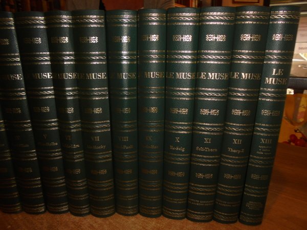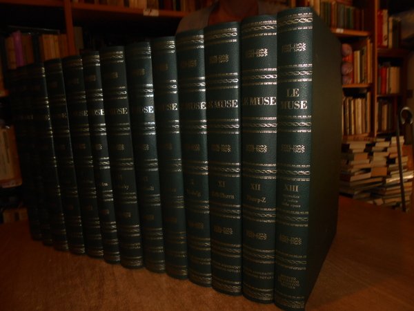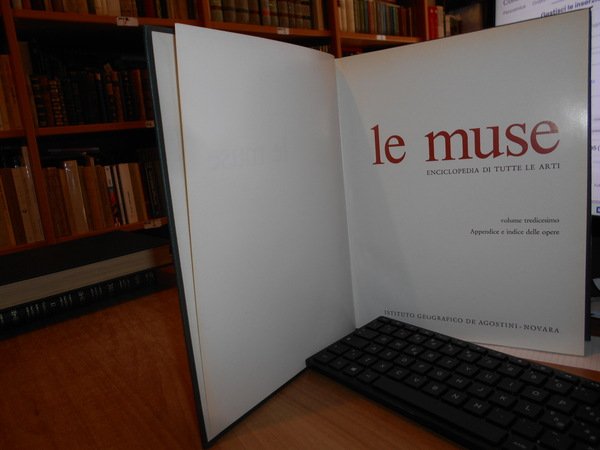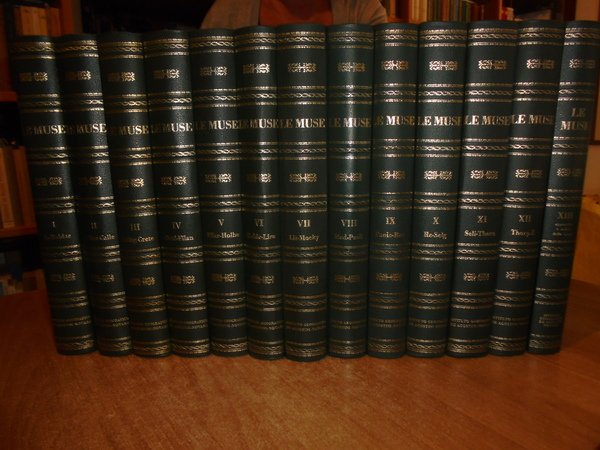 AA. VV. Novara, Istituto Geografico De Agostini, 1964/1974. LE MUSE Enciclopedia di tutte le Arti. Prima edizione. 13 volumi in-4°, similpelle verde scuro con fregi e titoli in oro ai dorsi. (vii), 527,(1) pp.; 527, (1) pp.; 503, (1) pp.; 527, (1) pp.; 527,(1) pp.; 503, (1) pp.; 527, (1) pp.; 527, (1) pp.; 503, (1) pp.; 527, (1) pp.; 527, (1) pp.; 503, (1) pp.; 399 pp. Opera completa perfettamente conservata. Uff. mob. A - II - 5.