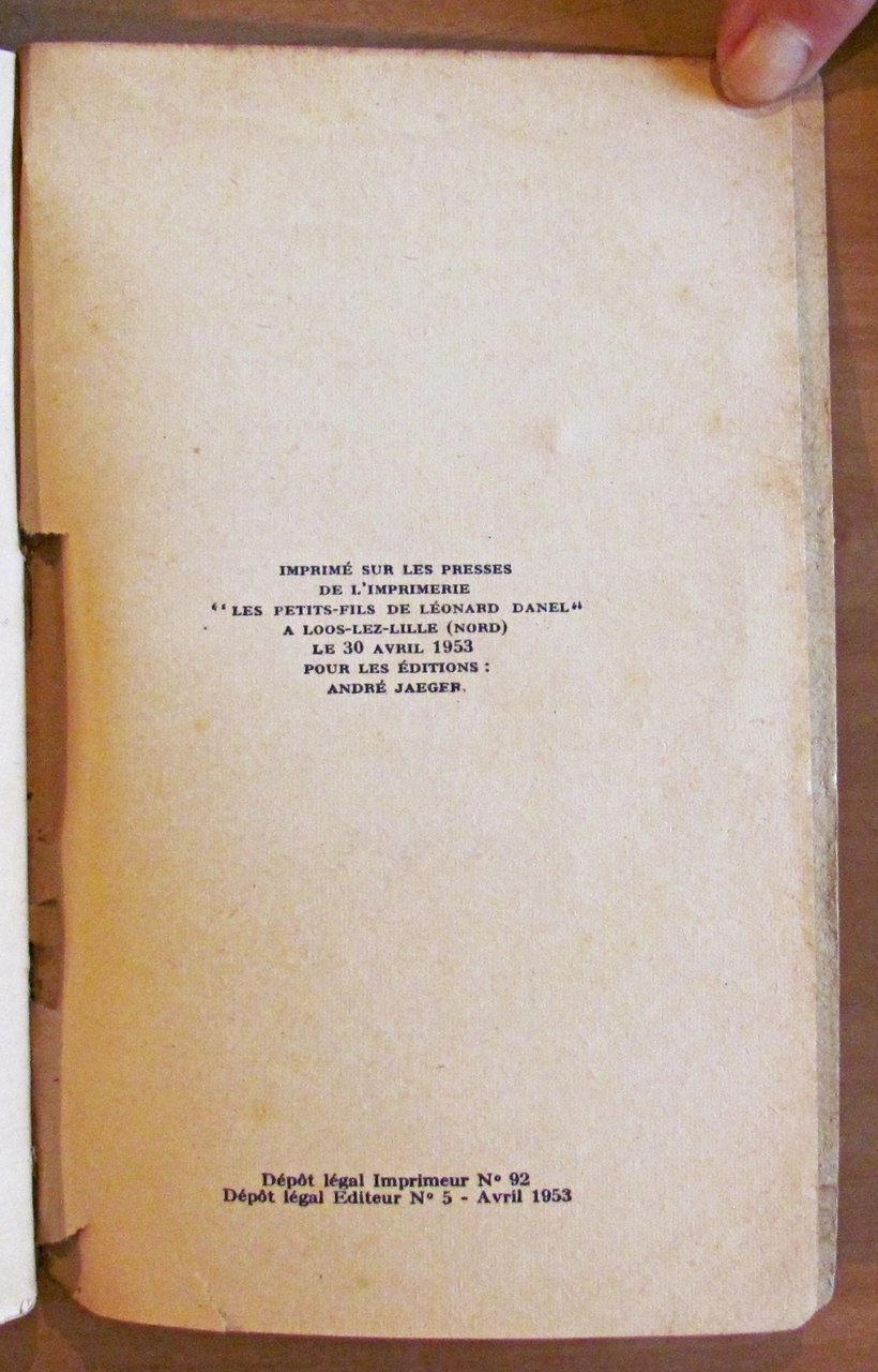 Ed. André Jaeger - Paris, 1953. Brossura editoriale con restauro alla parte alta del dorso e tracce del tempo alle copertine. Firma di vecchia appartenenza all'occhietto. 11x18; pp.251. Buonissimo stato. , Molto buono (Very Good)