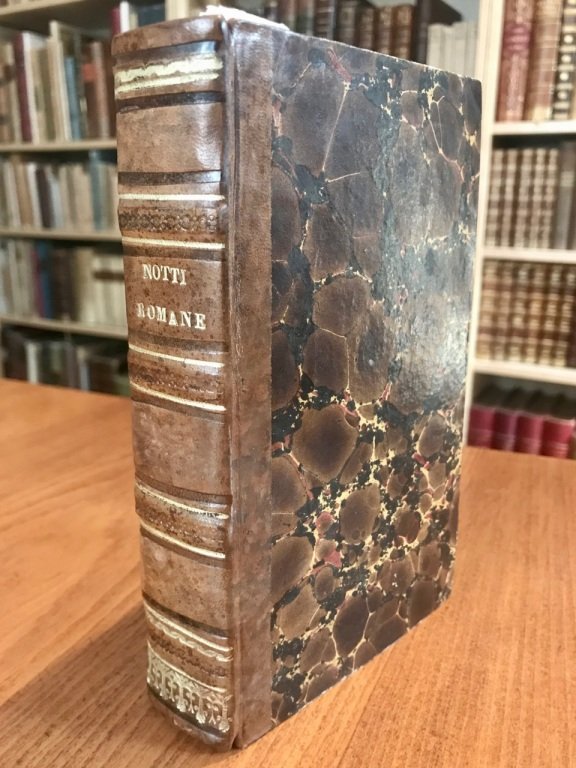 2 parti in 1 volume in-8° (cm. 16,7), solida legatura coeva in m. pelle con titolo e filetti in oro e a secco al dorso, pp. 260 [4], 256 [8] in ottimo stato, con 7 tavole illustrative f.t.; sporadiche e leggere fioriture. Prima edizione milanese della seconda parte «che tanto avidamente aspettavasi dagli amatori della bella letteratura» dopo «lo smercio rapido della prima parte, di cui si sono fatte da questa stamperia già tre edizioni» [Avviso dell'Editore]. Libro di successo che divulgò il fascino delle rovine, l'autore poteva vantarsi che il Papa ne tenesse una copia sul comodino. Cfr. Melzi II, 246. Ottimo esemplare. (NH8)