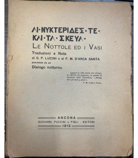 Traduzioni e Note di G,P. Lucini e di F.M. D'Arca Santa. Precedute da un dialogo notturno. Ancona. Giovanni Puccini 1912, 8°, pp. XLIX+470, con 7 tavole f,t, Sciolto e mancano le copertine originali.