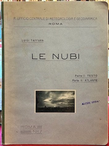 4to (cm. 32), 67(1) pp. con 36 figure (di cui 4 fotografiche su due tavole su cartoncino f.t.), 26 tavole su carta patinata. Cartoncino editoriale con illustrazione applicata al piatto anteriore e dorso in tela. Ottimo stato di conservazione. Estratto dagli Annali del R. Ufficio Centrale di Meteorologia e Geodinamica (Vol. XXXVII, Parte I, 1915). Raro. Provenienza: Collezione Spina, Avezzano (timbretti ex libris).