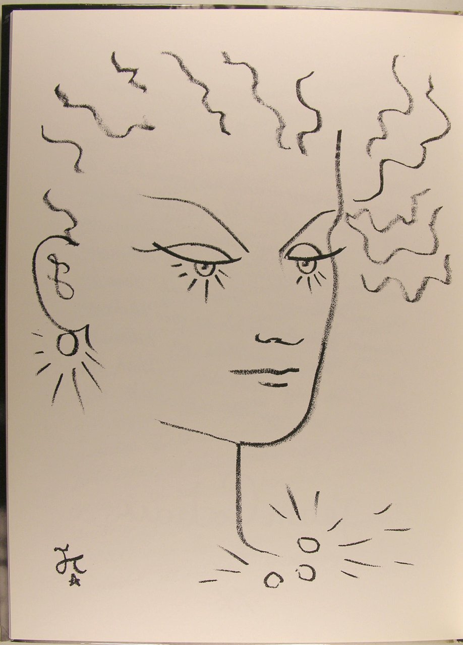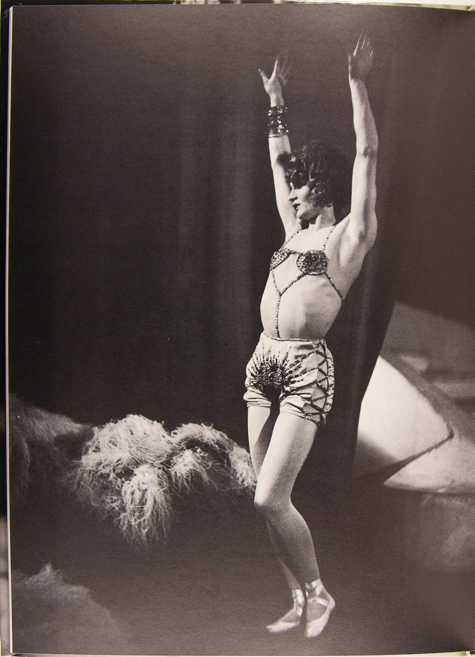 Jacques Damase éditeur, 1980, in/4, reliure éditeur, 79 pages. Photographies en et blanc de Man Ray. "Inspiré par Barbette (né Vander Clyde, 1898-1973), artiste, acrobate et trapéziste travesti américain, un beau texte de Jean Cocteau paru en 1926 dans une livraison de la Nouvelle revue française, ici augmentée de 25 photographies inédites de Man Ray."" Barbette est un jeune Américain de vingt-quatre ans, d'aspect un peu bossu comme les oiseaux, de démarche un peu infirme (sans doute à cause de mains et de pieds trop petits. (.) Partageons vers six heures le sandwich, l’œuf dur de notre acrobate, et accompagnons-le dans sa loge où il arrive à huit heures (il passe à onze) avec cette conscience inconnue des comédiens de chez nous, et propre aux clowns, aux mimes annamites, aux danseuses cambodgiennes qu'on coud chaque soir dans leur costume d'or. Barbette déniaise la fable grecque des jeunes hommes changés en arbres, en fleurs. Il en supprime la féerie facile. Nous allons suivre en pleine lumière, au ralenti, les phases d'une métamorphose dont Man Ray voulut bien fixer pour moi quelques progrès significatifs, entre autres lorsque Barbette, avec sa tête de femme contredite par son torse nu et sanglé de trousses de cuir, ressemble beaucoup aux Apollon des bandagistes. (.) C'est pourquoi Barbette, sitôt sa perruque arrachée, interprète un rôle d'homme, roule des épaules, étale ses mains, gonfle ses muscles, exagère la démarche d'un joueur de golf." Jean Cocteau. L'ouvrage présente également quelques dessins de Jean Cocteau, Serge et Gesmar et des portraits de Barbette par Walery et de Jean Cocteau par Man Ray