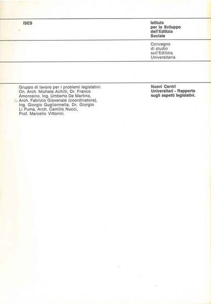 Le Nuovi centri universitari- Rapporto sugli aspetti legislativi. Convegno di studio sull'edilizia universitaria. Istituto per lo Sviluppo dell'Edilizia Sociale