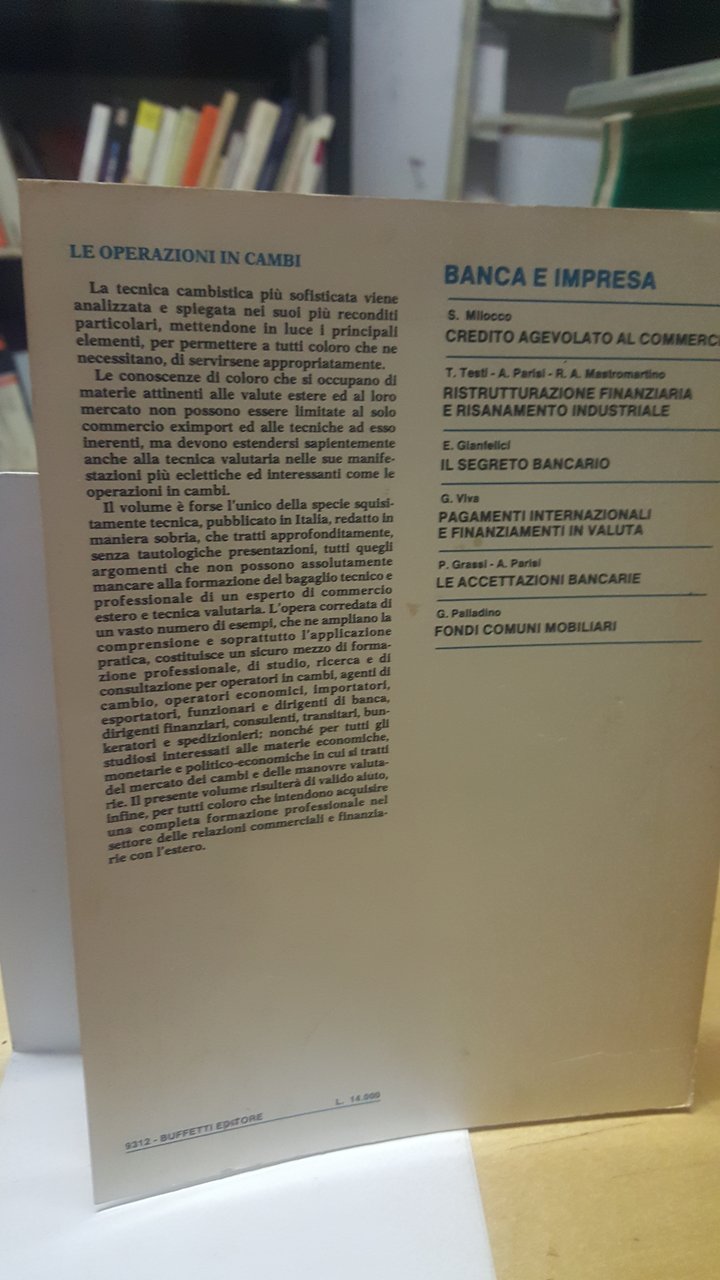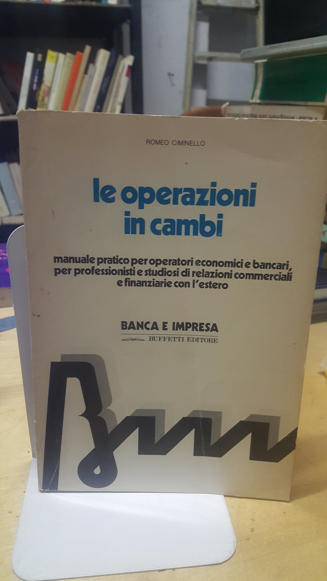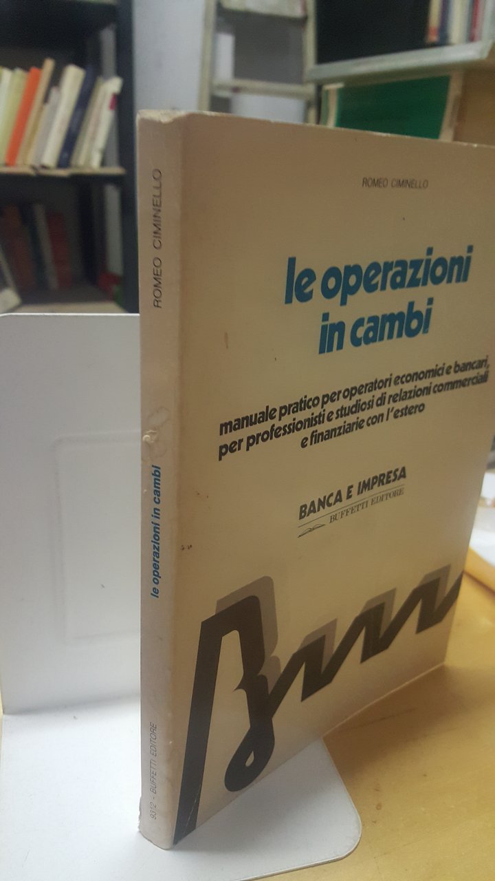 le operazioni in cambi manuale pratico ..economici.. bancari studiosi..commerciali..finanziarie... roma, buffetti editore 1983 italiano, pp.230 *normale*