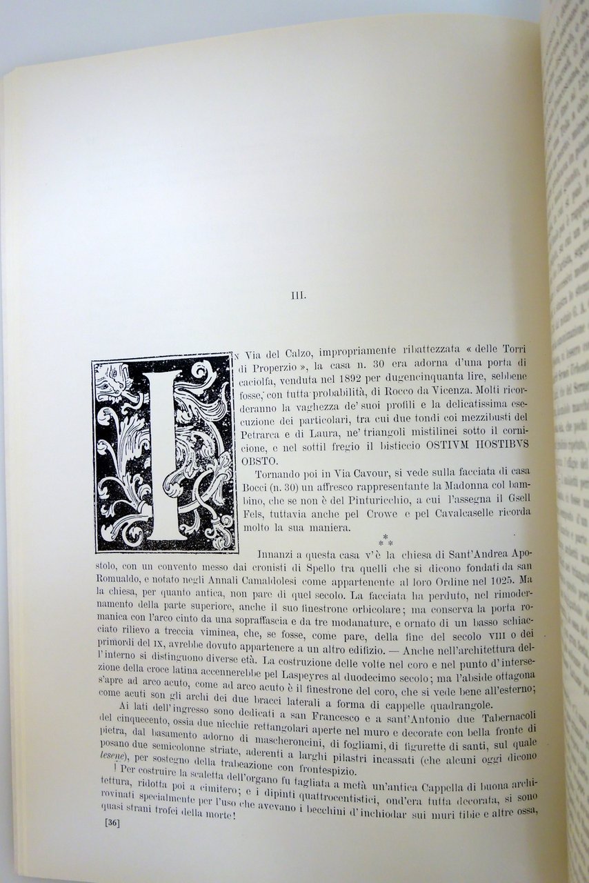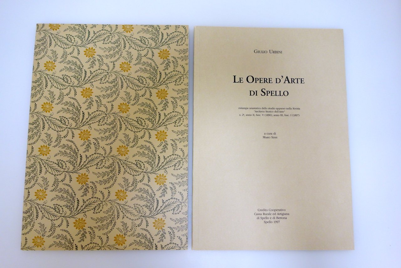 Credito Cooperativo Cassa Rurale ed Artigiana di Spello e di Bettona, Spello, 1997; ristampa anastatica da "Archivio Storico dell'Arte" anno 2 fasc. V (1896), anno 3 fasc. I (1897); cm 21x30, pp. 38+73, con numerose ill. in b/n, cartoncino ed. ill., cofanetto ed. morbido ill. a col., opera completa in 2 volumi, con dedica autografa del curatore al frontespizio