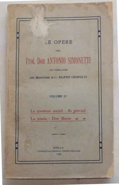 Le opere del Prof. Don Antonio Simonetti. Vol. II°. Le questioni sociali. - Ai giovani. - La scuola. - Don Bosco.