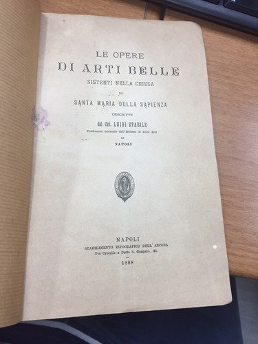 Descritte da L.S. Professore onorario dell'Istituto di Belle Arti di Napoli. Ivi. Stabilimento Tipografico dell'Ancora 1888, 8°, pp. 8. Tracce d'umido che non lede il testo. Bross. Muta modena con mancanze.