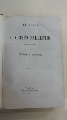 NAPOLI, PARAVICINI, 1867. Recate in Italiano da Vittorio Alfieri. I Commentari di Giulio Cesare recati in italiano da Camillo Ugoni. Commentari Sulla Guerra Alessandrina Libro Uno scritto da Aulo Irzio Pansa. Commentari sulla Guerra Affricana! Libro Uno scritto da Aulo Irzio Panza. Commentari sulla Guerra Ispana Libro Uno D`Incerto Autore. Le Vite degli Eccellenti Capitani di Cornelio Nepote Volgarizzate da Remigio Fiorentino. In 4∞: pp. 608. Collana Biblioteca Latina Italiana ossia raccolta di Classici Latini con versione italiane e note. Tracce di vecchia umidit‡. Leg. in mz. pelle, piatti cart. sciup. Lievi tracce d`uso. Bruniture.