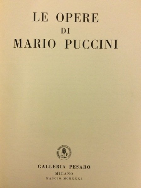 LE OPERE DI MARIO PUCCINI. - Milano, Galleria Pesaro, 1931.